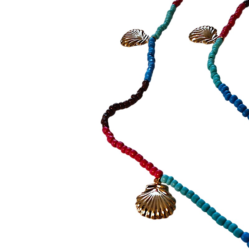 Lang Perle Brillekæde – Guld Muslingeskaller
