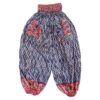 Da sarierne som bukserne er produceret af, er genbrugte, kan vi ikke garantere den præcise sammensætning af materialet i hver enkelt par bukser. De fleste indeholder en del mængde silke og ofte 100%, men kan også indeholde syntetiske fibre og være en blanding. Selvom vi foretrækker at undgå kunststoffer, mener vi stadig, at genbrugte sarier er et bæredygtigt valg, da stoffet får nyt liv i stedet for at gå til spilde.